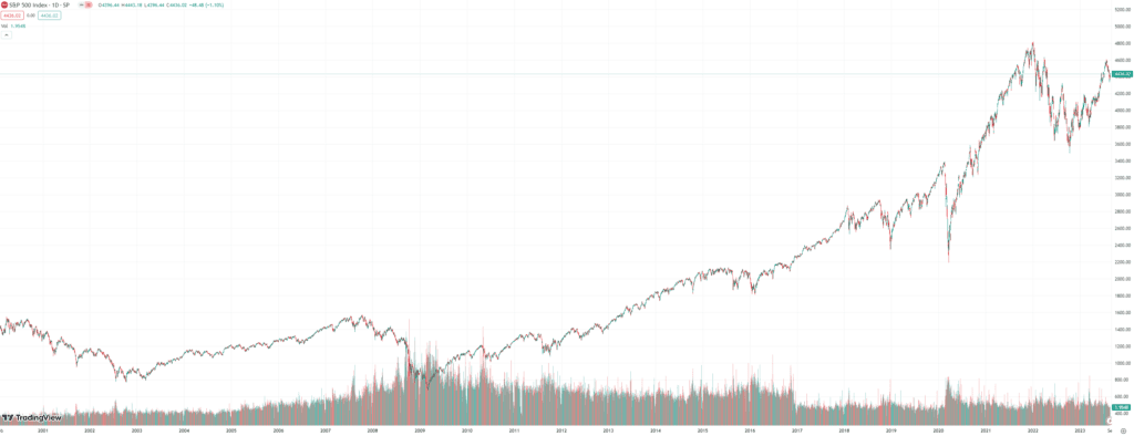 Az S&P 500 index árfolyama 2000 és 2023 között