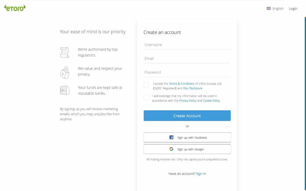 Az eToro használata rendkívül egyszerű, az oldalra való regisztráció **hasonlóan működik, mint bármilyen egyéb internetes oldalon. **