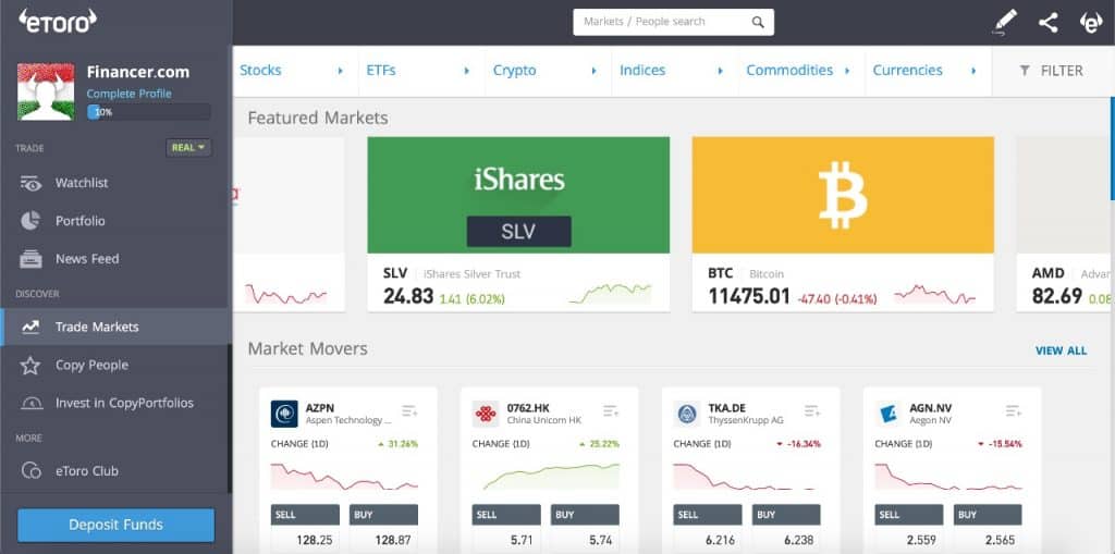 - Az eToro az egyik legnépszerűbb és leghasználtabb európai kereskedelmi platform.