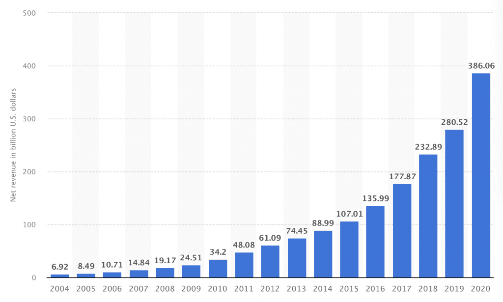 Az Amazon bevétele 2010 óta folyamatosan növekszik és újabbnál újabb rekordokat dönt. A következő grafikon ezt szemlélteti: