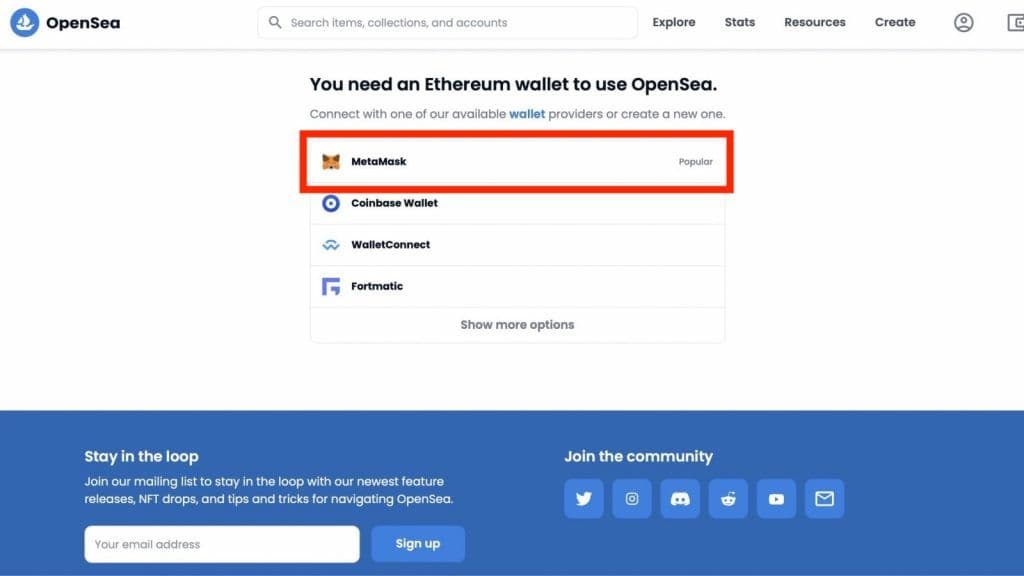 Miután megvásároltad a kívánt kriptovaluta mennyiséget, nincs más hátra, mint regisztrálni az OpenSea platformon.