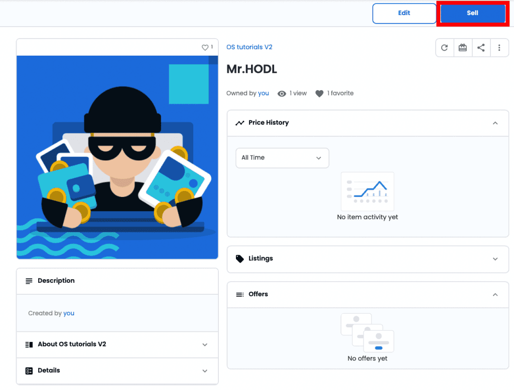 Navigálj az OpenSea profilodhoz és válaszd ki a tárcádban levő, eladásra szánt NFT-t.