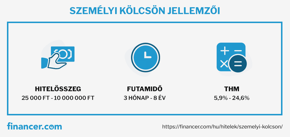 Személyi kölcsön esetén a futamidő 1 hónap és 8 év között mozog. A választható futamidő a kölcsön nagyságától és a hitelezőtől függ.