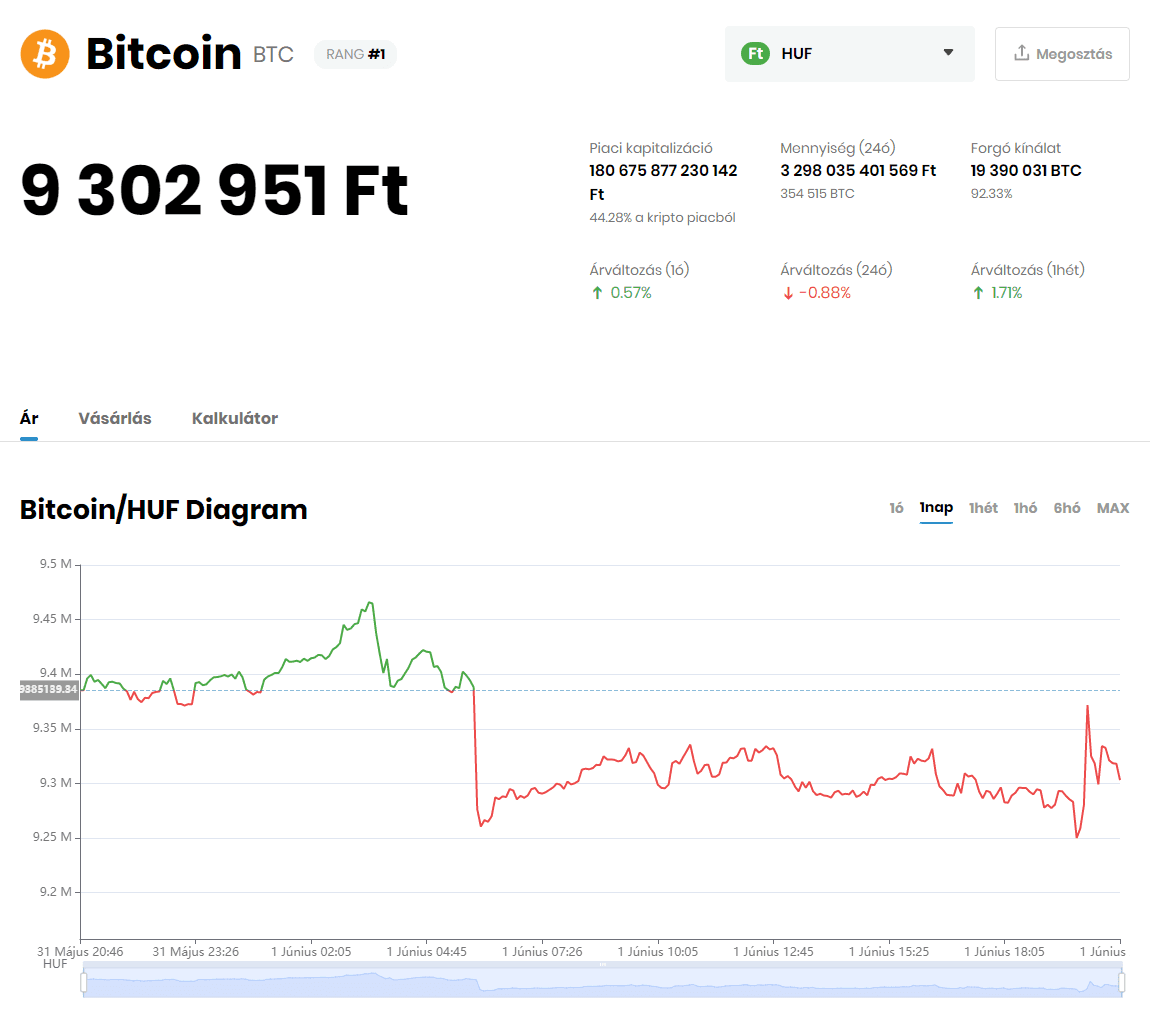 Miután megnyitottad a fenti listából valamelyik kriptovaluta oldalát, egy hasonló felület fog megjelenni: