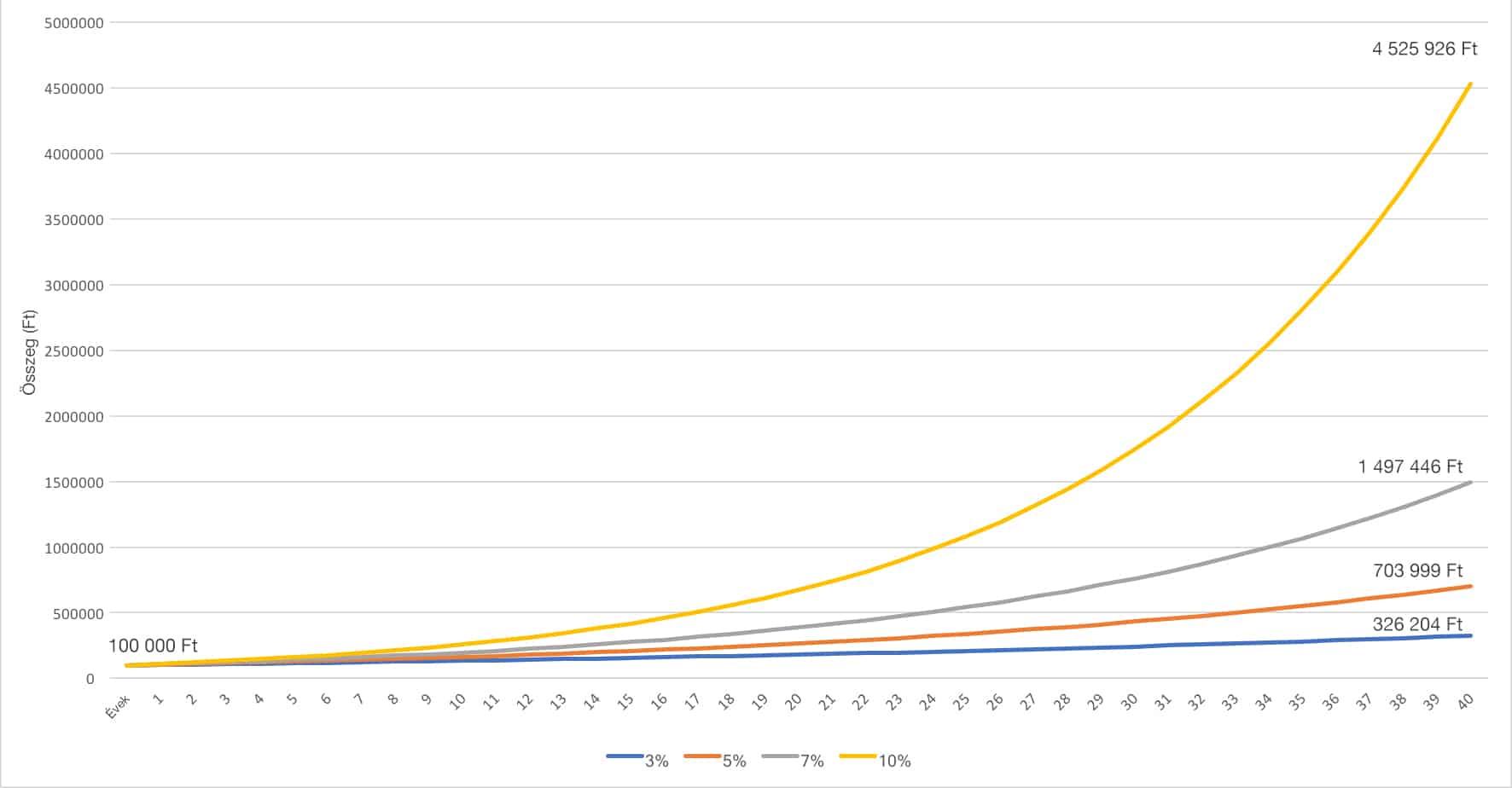 Ez azt jelenti, hogy a befektetett összeg minden évben egyre gyorsabban fog növekedni. A kamatos kamatot más néven effektív hozamnak, halmozott hozamnak is nevezzük.