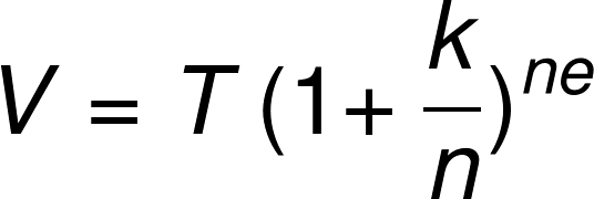 A kamatos kamat mértékének kiszámítására a következő képlet alkalmazható: